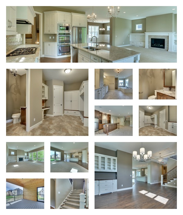 This is a brand new design in a brand new neighborhood! This stunning new oversized home is our newest Artisan model home #8 on the tour. The home is in a brand new Plymouth neighborhood, Serenity on the Greenway overlooking the future Greenway Park which means you won’t see other homes in your backyard. The home is nearly 5700 square feet of finished space and includes 5 bedrooms, 5 baths, bonus room upstairs, tall expansive windows, open floor plan, large wet bar and kitchenette in lower level. Click here to learn more about this new model home. Follow the Pinterest board to see all the selections in this beautiful new home.